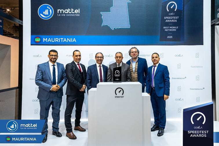 حصلت شركة ماتال، المشغل الأول للهاتف الجوال في موريتانيا، على جائزة أفضل شبكة جوال في البلاد خلال حفل أقيم ببرشلونة بتاريخ 2 مارس 2026، خلال المؤتمر العالمي للهاتف الجوال الذي تنظمه رابطة النظام العالمي للاتصالات المتنقلة (GSMA). وقد مُنحت هذه الجائزة من قبل شركة Ookla® الرائدة عالمياً في مجال ذكاء الاتصال وتحليل الشبكات.